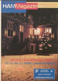 Donnerstag, 9. Dez. 15-17.30 Uhr Eissporthalle Disco für Kufenflitzer 18 Uhr Maximilianpark, Festsaal Volkstümliches Weihnachtskonzert der Städt. Musikschule Hamm 20 Uhr Gustav-Lübcke-Museum Jazz-Forum Hamm: Paul Motian Trio, Paul Motian, drums, Joe Lovano, saxo- phon, Bill Frisell, guitar Freitag, 10. Dez. 20 Uhr Volkshochschule Erwin Grosche „Dem Tiger die Stirn bieten" Kabarettprogramm Samstag, 11. Dez. 18 Uhr St. Pankratius Kirche Hamm- Mark Weihnachtsmusik: Brunckhorst „Die Weihnachtsgeschichte" Orgelwerke von J. S. Bach, Erika Kühner, Sopran, Helga VVeltermann, Alt, Gustav Grünhagen, Tenor, Ulrich Kleinemas, Bass, Rainer Kamp, Orgel, ein I nstrumen- talensemble, Chor der St. Pankratius Kirche Ltg: Gerhard VVilkening 19 Uhr Apostelkirche, Lange Str. Weihnachtliche Chormusik aus Deutschland und England 25 Jahre Schuke-Orgel, Vokalensemble Herringen Ltg: Christoph Mehner 20 Uhr Saalbau Bockum-Hövel „Sugar Dollies" Westfälisches Landestheater Castrop-Rauxel, Komödie von Klaus Chatten Sonntag, 12. Dez. 11 Uhr, Stadtbücherei, Ostenallee 1-5 „Die etwas andere Adventsfeier" Adventslesung des Freundes- kreises Stadtbücherei 11-18 Uhr Zentralhallen Second-Hand-Mode-Markt 17 Uhr Pauluskirche Offenes Singen mit allen Gemeindegruppen Ltg. Wilhelm Farenholz 20 Uhr Maximilianpark, Festsaal Weihnachtskonzert: Matti Salminen C-Brass Berlin und Cantate '86 Montag, 13. Dez. 19.30 Uhr Kino Kristallpalast, Martin- Luther-Str. 33 „Einblick - Ausblick - Durchblick" Jurgen Becker (Mitternachtsspitzen) und Franz Alt (Südwestfunk) 20 Uhr Maximilianpark, Festsaal Würtembergisches Kammerorchester Heilbronn: Werke von Stamitz, Mozart, Rosetti und Danzi, Sabine Meyer, Klarinette, Patrick Gallois, Flöte Ltg: Jörg Faerber Dienstag, 14. Dez. 15 Uhr Bürgersaal, Hohe Str. 71 Theatersalon 1999- „Mythen”: „Donnerfuß Feuerzopf" Theater mimikri Mittwoch, 15. Dez. 9.00 Uhr Zentralhallen Pferdemarkt 10 Uhr Bürgersaal, Hohe Str. 71 Theatersalon 1999- „Mythen”: „Wer den Wind erweckt hat" Helios Theater (ab 4 J.) Donnerstag, 16. Dez. 11 Uhr Bürgersaal, Hohe Str. 71 Theatersalon 1999- „Mythen”: "Vier Männer tönen" Helios Theater (ab 6 J) Samstag, 18. Dez. 18 Uhr Zentralhallen Kelly-Family 20 Uhr Bürgersaal, Hohe Str. 71 Theatersalon 1999- „Mythen”: „Sisyphos - ein Leben in der Unterwelt" Helios Theater Hamm, HAMMagazin Dezember Dezember 99 13 Schauspiel, Musik, Figuren- und Objekttheater (ab 16 J.) 22 Uhr Kulturrevier Radbod Rosa-Engel-Party Sonntag, 19. Dez. 11-18 Uhr Zentralhallen Sammler-, Kleintier- und Trödelmarkt 16 Uhr Bürgersaal der Sachsenhalle Advents- und Weihnachtssingen Kirchenchöre St. Theresia, St. Marien, St. Stephanus Mittwoch, 22. Dez. 16 Uhr Jugendcafé Werries, Alter Uentroper Weg Weihnachtsdisco Musik, Spiel und Spaß Sonntag, 26. Dez. 10.30 Uhr St. Stephanus-Pfarrkirche, Hamm-Heessen Dvorak: Messe in D-Dur op. 86 für Soli Chor und Orchester, Bizet TE DEUM, Gudrun Woltmann- Farghaly, Sopran, Ulrike Bartsch, Alt, Bernd Stepputtis, Tenor, Friedhelm Brill, Bass, Dr. Hans Ossing, Orgel, Kirchenchor St. Stephanus, Mitglieder des Philharmonischen Orchesters Dortmund Leitung: Franz-Josef Buthe 19.30 Uhr Restaurant Queens Hotel, Neue Bahnhofstr. 3 „Klassik in Restaurants": Ladies Swing Quartet, Petra Manon Hirzel und Claudia Würthner, Violine, Susanne Gmelin, Viola, Regine Friederich, Violoncello, 4-Gang-Menü Mittwoch, 29. Dez. 9.00 Uhr Zentralhallen Pferdemarkt Freitag, 31. Dez. 18 Uhr ev. Kirche Rhynern, Alte Salzstr. Chor- und Orchesterkonzert zum Jahreswechsel: Werke von Franck, Vivaldi und Haydn, Heike Niebuhr, Piccolo-Blockflöte, Gabriele Fuchs, Sopran, Eleonore Vogel!, Alt, Harald Plaumann, Tenor, Dirk Mettenbörger, Bass, Heiko Held, Orgel, Chor und Orchester der Kantorei Rhynern Leitung: Rainer Kamp 19.30 Uhr Maximilianpark, Glaselefant Silvester-Gala-Abend im Elefanten Tanz- und Showband „Fishing For Compliments", (Eintritt: 250,- DM inkl. Buffet und Getränken) 23.15 Uhr Liebfrauenkirche Nocturne zum Jahreswechsel: Charpentier Te Deum Vokalsolisten, Cappella vocale Liebfrauen, historische I nstrumente Leitung: Johannes Krutmann Second- Hand Modemarkt Sonntag 12. Dez. 9. Jan. 11.00 - 18.00 Uhr ZENTRALHALLEN HAMM I nto: zyxwvutsrqponmlkjihgfedcbaZYXWVUTSRQPONMLKJIHGFEDCBA Postlach 1609. 59006 Hamm Teielon 0 23 81 37 77-12,3777-13 Fax 0 23 81 37 77-79