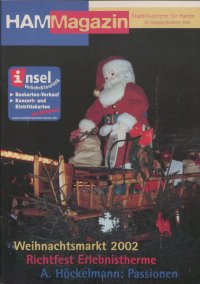 HAM Magazin Weihnachtsmarkt Dezember 02 4 Programm in der Adventszeit Regelmäßiges Programm: • Täglich ab 18.15 Uhr Ausklang des Weihnachts- marktes mit wechselnden I nterpreten • Täglich ab 15 Uhr eine halbe Stunde Kirmesorgel des Nostalgiekarussels • Täglich Weihnachtliche Live-Musik im Atlantico-Zelt • Jeweils um 17.00 Uhr Öff- nen des Adventkalenders vom 1. bis 23. Dezember • Malwettbewerb für Kinder bis sechs Jahre, weitere I nfos in der SEB-Filiale Hamm, Weststraße • Adventsticket der Stadtwerke So., 1.12.2002 ( 1. Advent) 10.00 Uhr Festgottesdienst zur Wieder- eröffnung des Hauptportals, mit anschließendem Festakt, Paul uskirche 15.00 Uhr Out of Tune, Weihnachts- konzert, Aktionsbühne Mo., 2.12.2002 18.15 Uhr Heart Attack, Weihnachts- konzert, Aktionsbühne Di., 3.12.2002 18.15 Uhr "Michael Kunze-Quartett", Weihnachtskonzert, Aktionsbühne Mi., 04.12.2002 17.00 Uhr Posaunenchor Mark, Weih- nachtskonzert, Aktionsbühne 19.00 Uhr Offenes Training des der Eisstockschützen des Vereins "Schwarz-Rot Soest e.V.", Eiszauber Do., 5.12.2002 18.15 Uhr Handful Soul unplugged, Weihnachtskonzert, Aktionsbühne 19.30 Uhr Sparkassen-Eisstock-Cup, Eiszauber Fr., 6.12.2002 Nikolaustag 15.30 Uhr - 17.30 Uhr Der Nikolaus kommt mit dem Winterschlitten in die Stadt und besucht die Kinder auf dem Weihnachtsmarkt 16.00 Uhr Weihnachtskonzert auf dem Weihnachtsmarkt: Willi Manilli, Aktionsbühne Sa., 7.12.2002 11.15 Uhr Orgelmusik zur Marktzeit, Pauluskirche 14.00 Uhr Zauberer, Aktionsbühne 17.15 Uhr Kickin Up Dust, Weihnachts- konzert, Aktionsbühne So., 8.12.2002 ( 2. Advent) 10.00 Uhr Familiengottesdienst zum Advent, Pauluskirche 15.00 Uhr, 17.00 Uhr Rebecca, Weihnachtskonzert, Aktionsbühne 18.00 Uhr Weihnachtskonzert der Musikschule, Pauluskirche Mo., 9.12.2002 17.00 Uhr Posaunenchor Mark, Weih- nachtskonzert, Aktionsbühne Di., 10.12.2002 18.15 Uhr Weihnachtskonzert im Weih- nachtsmarkt: Dirty Wheels unplugged, Aktionsbühne Mi., 11.12.2002 18.15 Uhr Weihnachtskonzert im Weihnachtsmarkt: Atlantico-Band, Aktionsbühne 19.00 Uhr Offenes Training des der Eisstockschijtzen des Vereins "Schwarz-Rot Soest e.V.", Eiszauber Do., 12.12.2002 18.15 Uhr Hamm Accustic Quartett, Weihnachtskonzert, Aktionsbühne 19.30 Uhr Sparkassen-Eisstock-Cup, Eiszauber Wochenmarkt . Da. Sal Ank tet. zyxwvutsrqponmlkjihgfedcbaZYXWVUTSRQPONMLKJIHGFEDCBA • • • • • • • • • • 1•••• Wciitsqr 1.1 AtI ormaac.• WeevretAr ii 1 1. 11 r imozie ....6......... .„ __...1 mairmt 1 1 i i U MUM" MM . Pete * Mum&